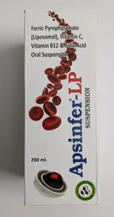 Apsinfer LP is an iron supplement Suspension for treating iron deficiency in patients. It has the best absorbable liposomal iron, along with vitamin C, B12 and folic acid.