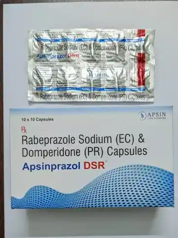 Apsinprazol DSR is a combination of proton pump inhibitors (Rabeprazole) and antiemetics (Domperidone) for treating gastric disorders.