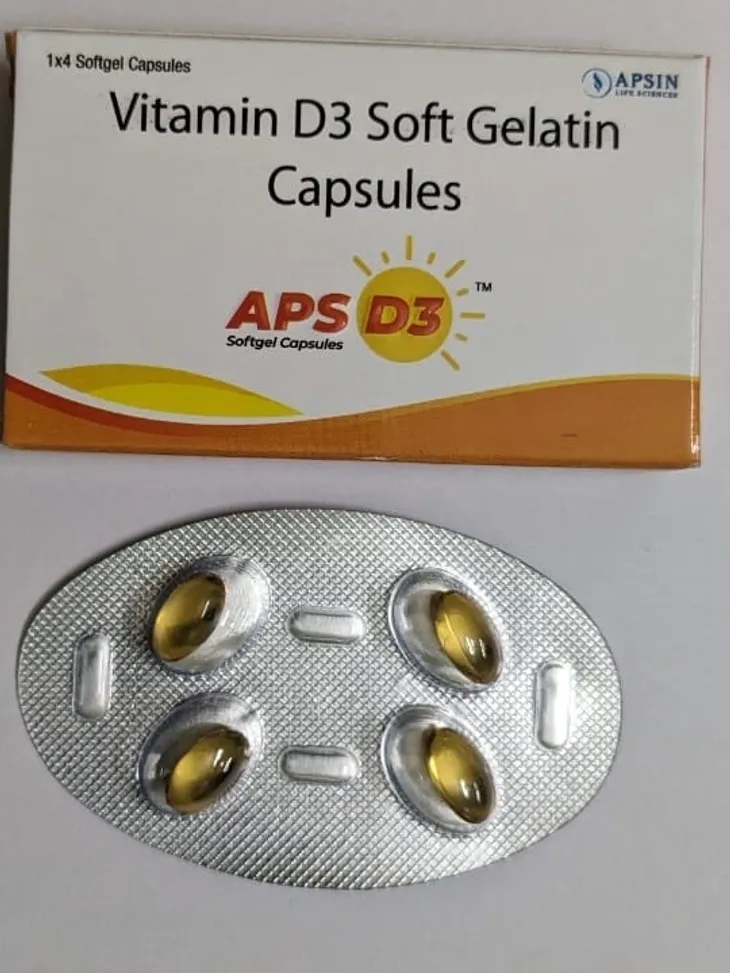 Aps D3 has 60000 IU of vitamin D3 in a single soft gelatin capsule for treating vitamin D deficiency.