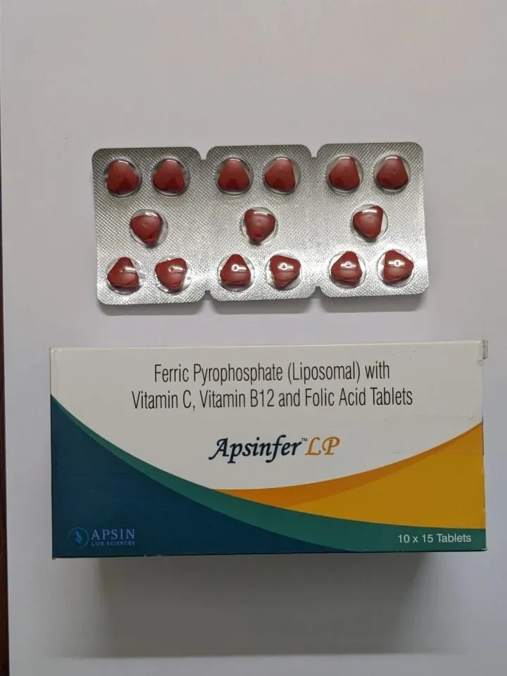 Apsinfer LP is an iron supplement tablet for treating iron deficiency in patients. It has the best absorbable liposomal iron, along with vitamin C, B12 and folic acid.