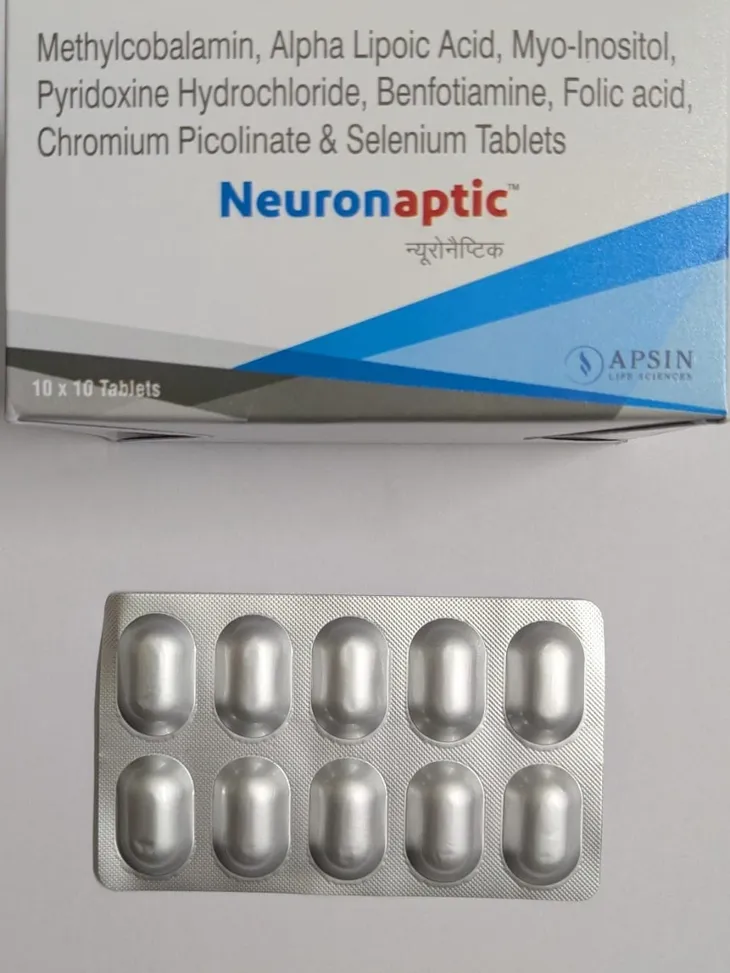 Neuronaptic is a B vitamin supplement along with alpha-lipoic acid, Myo Inositol, Chromium & Selinium for addressing neuropathic pain.